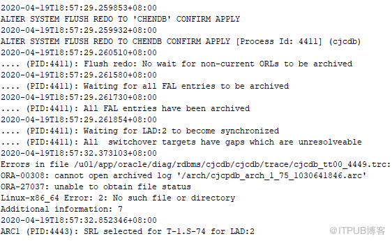 如果flush redo 命令没生效,也可以将归档文件拷到备库端,手动执行注册