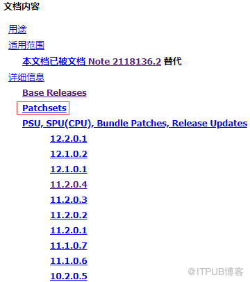 数据库/GI PSU,SPU(CPU),Bundle Patches 和 Patchsets 补丁号码快速参考 (Doc ID 1922396.1)