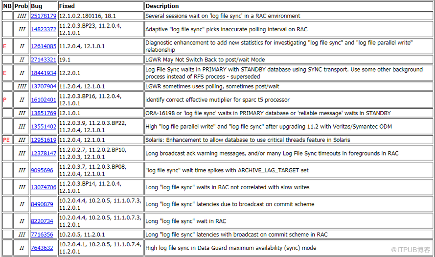 8 log file sync 等待事件相关的 oracle bug 遇到过哪些?