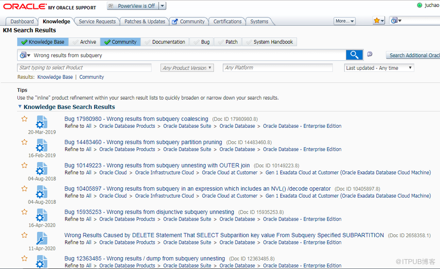 这个问题究竟算不算 BUG 呢?在 MOS 上可以查询很多关于子查询的 BUG ,但是没有找到完全匹配的,先记录这些,后期有发现在更新吧。