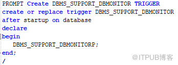 1 DBMS_SUPPORT_DBMONITOR触发器定义了,当数据库启动时会自动执行 DBMS_SUPPORT_DBMONITORP 存储过程。