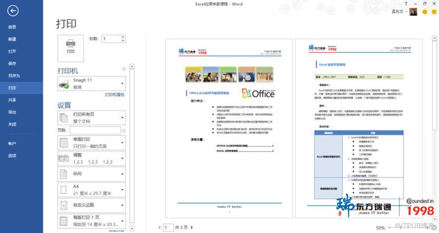 (2)切换到“打印”选项卡,在这里您可以方便地进行打印选项的设置,与此同时,在右侧的窗格中即可同步预览到打印效果。