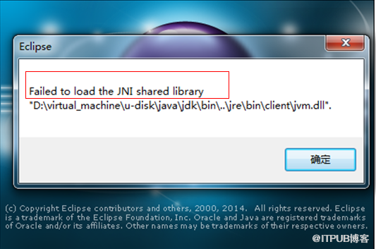 然后启动eclipse,重新启动也是报错。 “Failed to load the JNI shared library"