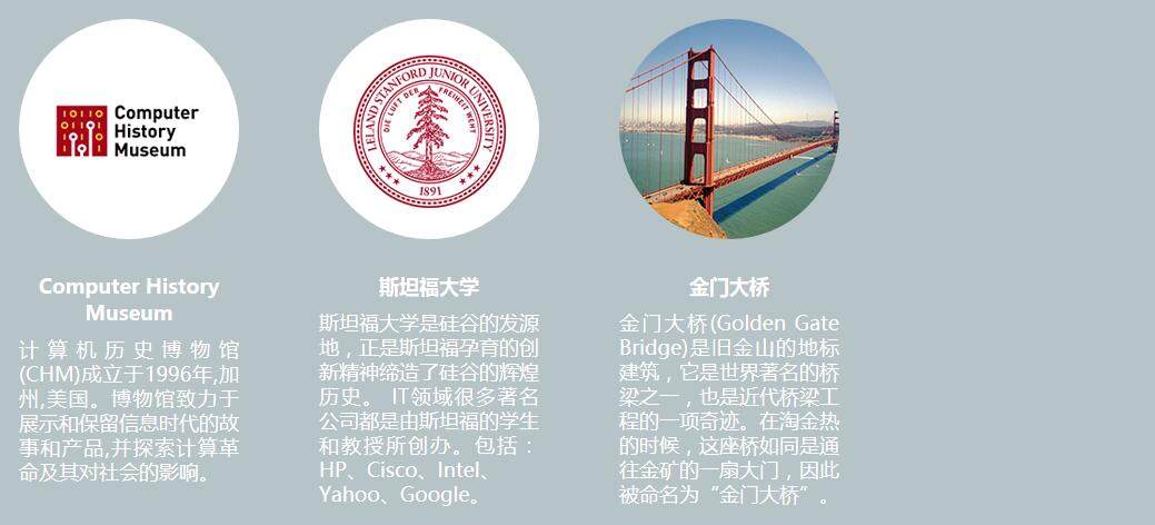硅谷,是一个创造未来的地方。从仙童半导体到英特尔,从雅虎到谷歌,从Facebook到Uber,从苹果到特斯拉,硅谷创造的一个个传奇,改变着我们的未来。是什么缔造了硅谷的传奇?随着人工智能、自动驾驶、虚拟现实的风起云涌,硅谷将以什么样的姿势再一次创造未来? 2017年3月5日至11日,“硅谷创新研修营”将深入硅谷核心地带,参访那些浪潮之巅的企业,和引领世界的大咖深度脑暴,与您一起探究IT传奇的成长密码。