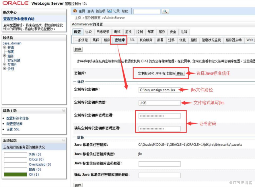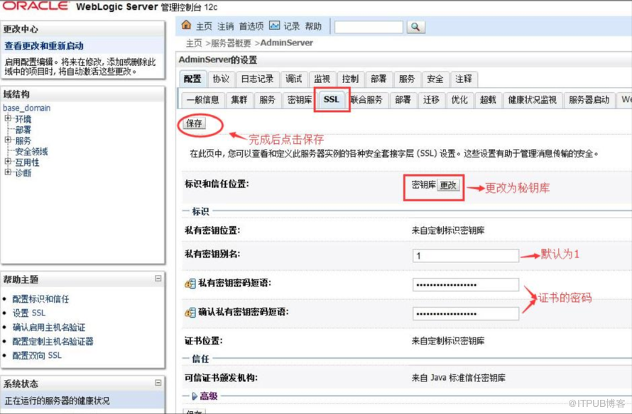修改完以上所有项目并且保存后, 会自动激活, 更改这样就不需要重启(对于更新已有证书,需要重启weblogic server服务生效)