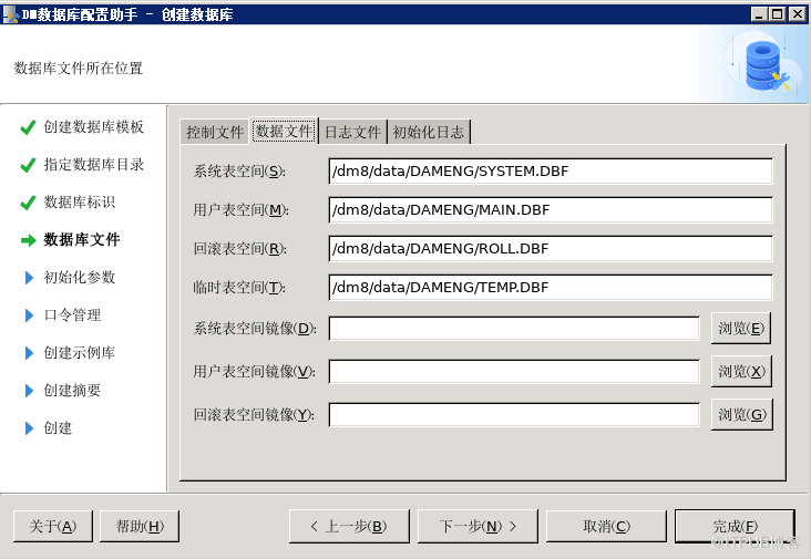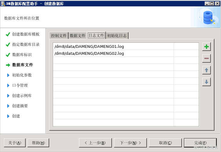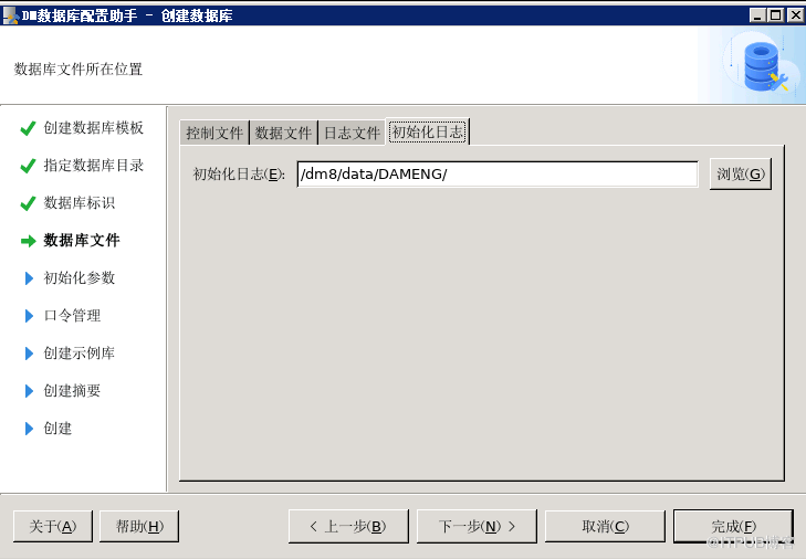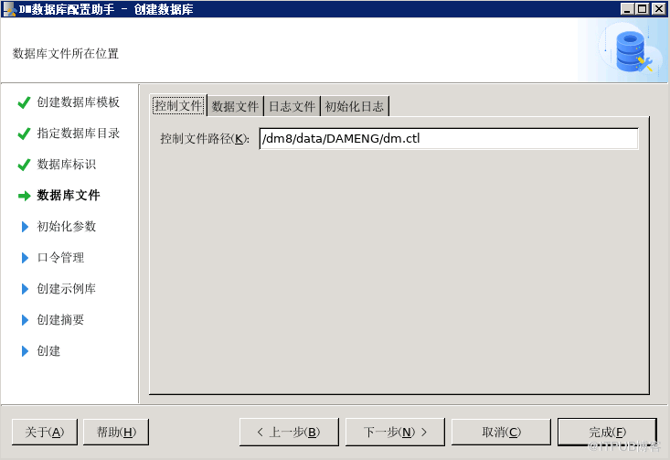 7.查看或修改控制文件路径、数据文件路径、日志文件路径、初始化日志操作后点击【下一步】