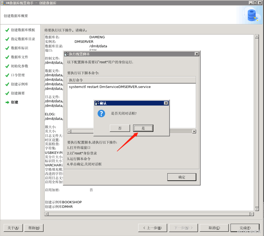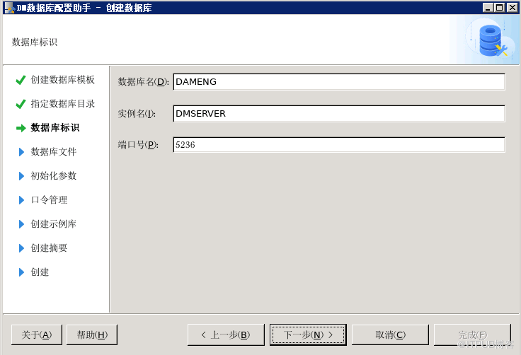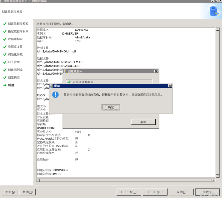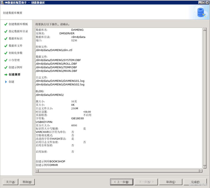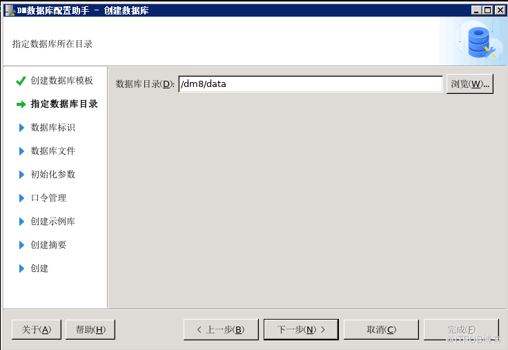 安装完成达梦8数据库软件时,如果已选择安装服务器组件,并且确定安装初始化数据库,安装程序将调用数据库配置工具(database configuration assistant,简称为 DBCA)来实现数据库初始化。