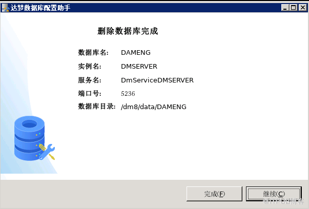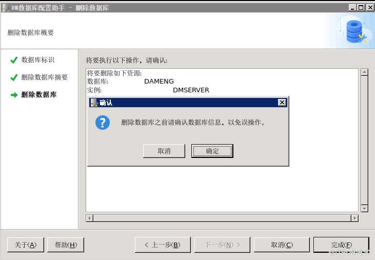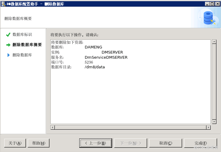 4.展示删除数据库摘要,确认没有问题后点击【完成】