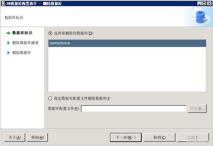 3.选择要删除的数据库 DMSERVER,点击【下一步】