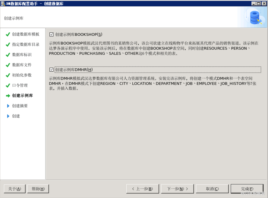 10.创建示例库,默认不勾选,测试环境可以选上,点击【下一步】