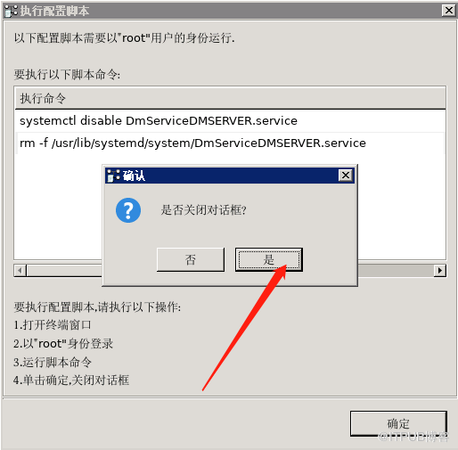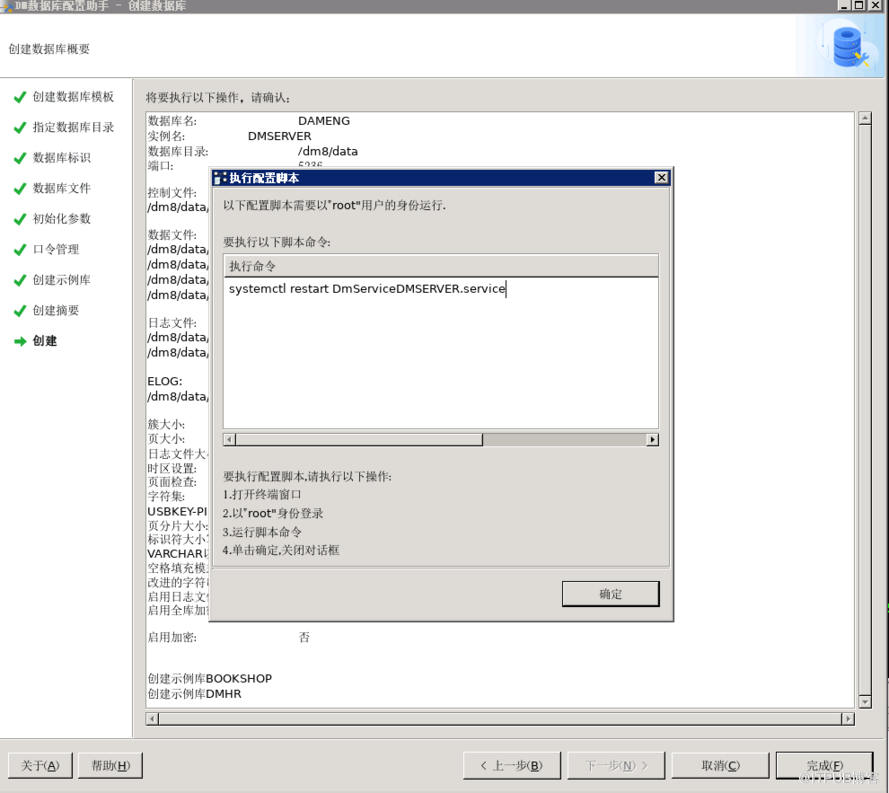17.执行重启数据库服务命令,返回刚才窗口点击【 确定】