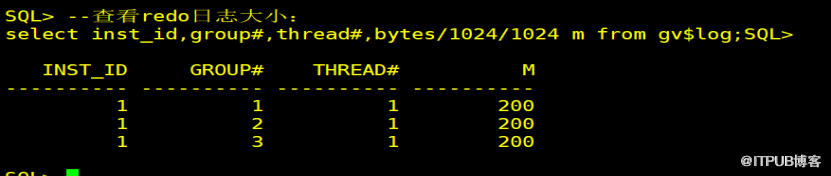 select inst_id,group#,thread#,bytes/1024/1024 m from gv$log;