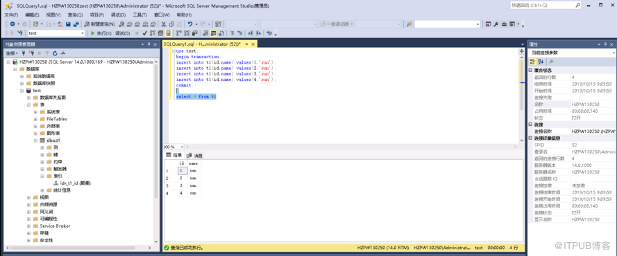 USE test CREATE TABLE t1( id int NULL, name nchar(10) NULL ) ON 'PRIMARY'