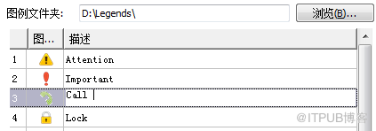 正中的是所有MindMapper图例清单以及每个图例的描述。我们可以点击描述对话框,对该图标的描述进行修改,重新输入。