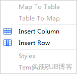 在表格下拉框内,我们有六个选项,分别是:Map to Table,Table to Map,Insert Column,Insert Row,Styles,Templates。