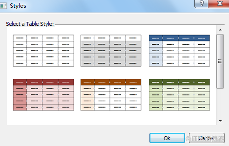 Styles:风格,点击打开选择表格风格,进行更换。