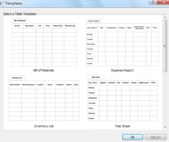 Templates:模板,在一开始建立表格的时候选择建立表格的样式,在模板中进行选择。