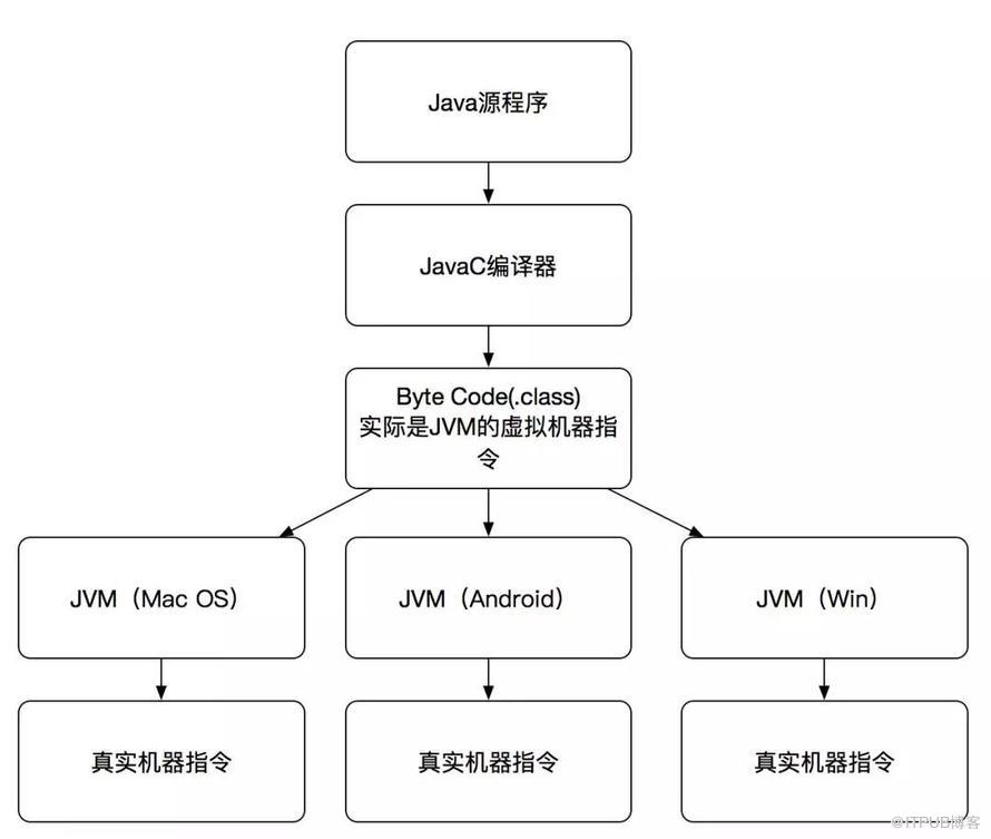 首先它要做的是把JavaC编译器生成的ByteCode(ByteCode其实就是JVM的虚拟机器指令)生成每台机器所需要的机器指令,让Java程序可执行(如下图)。