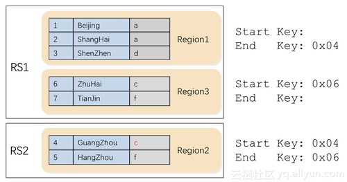 region划分的粒度是行,region就是这个表中多个连续的行构成的集合。行的唯一标识符是rowkey,所以,可以将region理解为一段连续分布的rowkey的集合。所以,称这种方式为基于rowkey范围的划分。