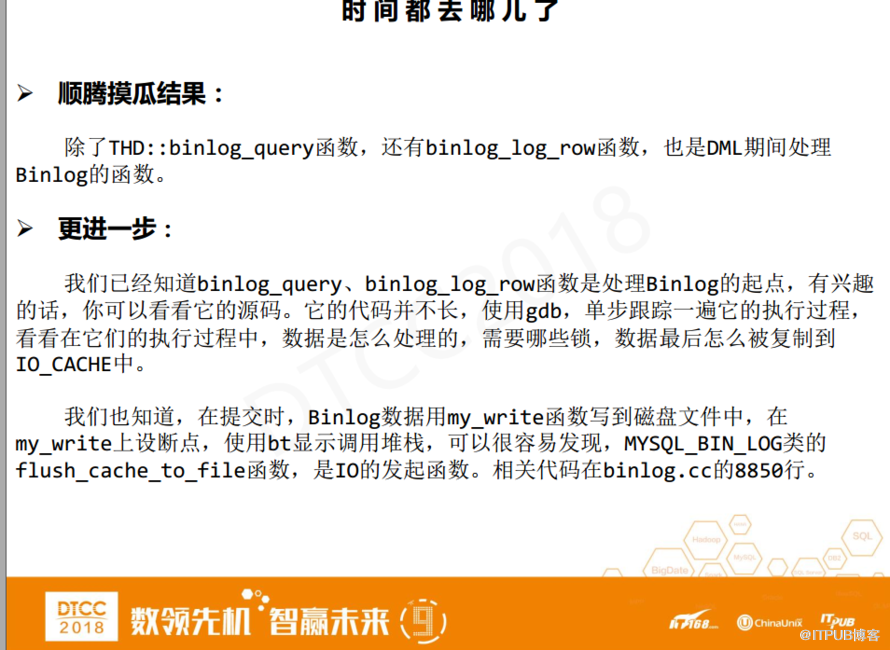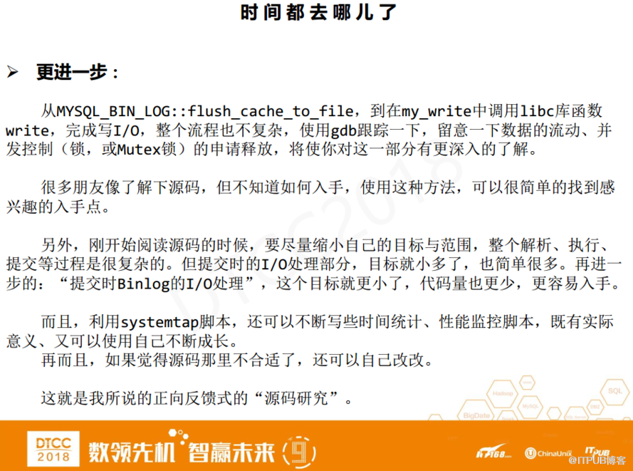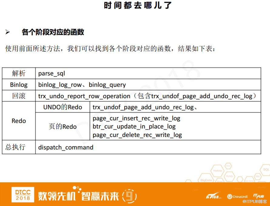 利用我们刚才找到binlog处理函数的方法,我们还可以找到解析、回滚等其他函数。在研究代码的时候,我建议大家循序渐进,如果代码量很大,可以先尝试从比较小的操作入手,并辅助以动态跟踪技术。