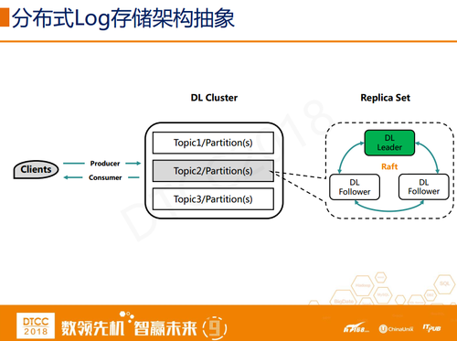 上图是分布式log系统的抽象架构,客户端对分布式集群生产数据或消费数据,在系统设计的时候,我们做了些基本的语义抽象,例如topic、partition概念,逻辑上和kafka很像,其中每个partition都有多个副本,上图中我只画了三个副本,同一个partition的副本之间使用raft进行数据复制。如果简单来理解的话,大多数情况下都有一个稳定的leader和两个follower。