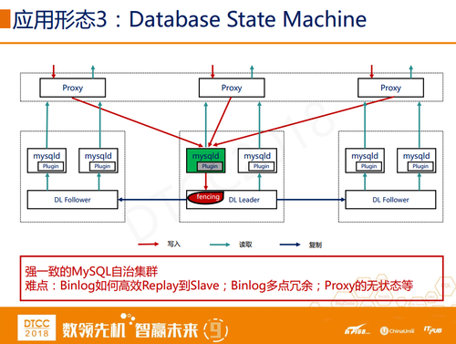 第三,做数据库内核复制其实基本都是一个思路——DataBase State Machine。我们实现了一个强一致的MySQL自治集群,其中的难点包括Binlog如何高效Replay到Slave;Binlog多点冗余;Proxy的无状态等等。