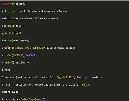 在这里,我们定义了1个类Car,在这个类里,定义了两个初始属性Carname和CarMoney,但是人还有性别啊!如果这个类不是你写的是不是你会尝试访问性别这个属性呢?