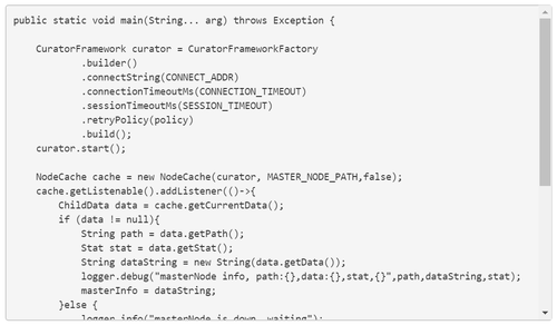 调度服务器主要向ZooKeeper注册自己,并向客户端提供服务。我们使用curator框架来和ZooKeeper交互,特别要注意版本问题。