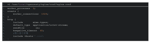 在/usr/local/openresty/nginx/conf文件夹下创建vhosts目录,然后依次创建一下文件(演示文件,正式环境中会有多个项目转发)。