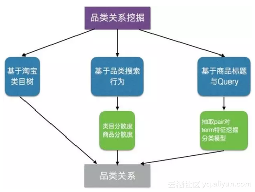 挖掘了概念相当于我们得到了图上的节点,在概念挖掘之上,我们又着手建立概念与类目和品类,概念和概念之间的关系,相当于建立了图上的有向边,并计算边的强度,具体流程如下: