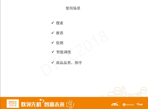 使用场景,主要使用在搜索、推荐,促销、智能调度,商品分类,排序等场景。从饿了么首页往下点,大概有80%的操作流程和KV有关,这些KV数据多是属性信息,比如用户画像、商品属性等等。