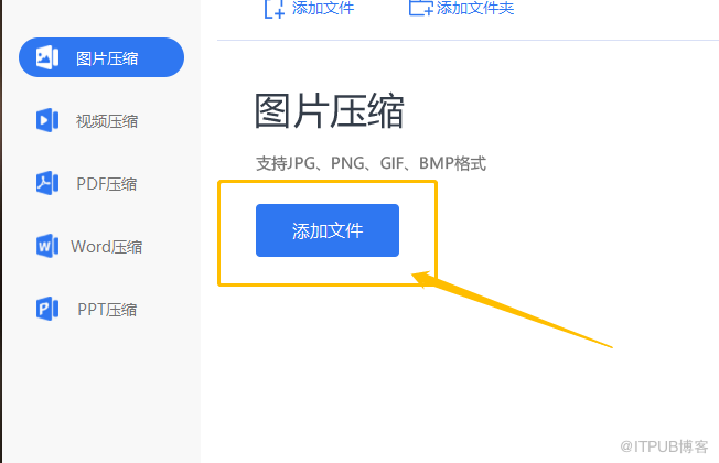 2:我们可以选择添加我们需要进行压缩的图片,点击添加文件的按钮,就能够进行文件的选择了。