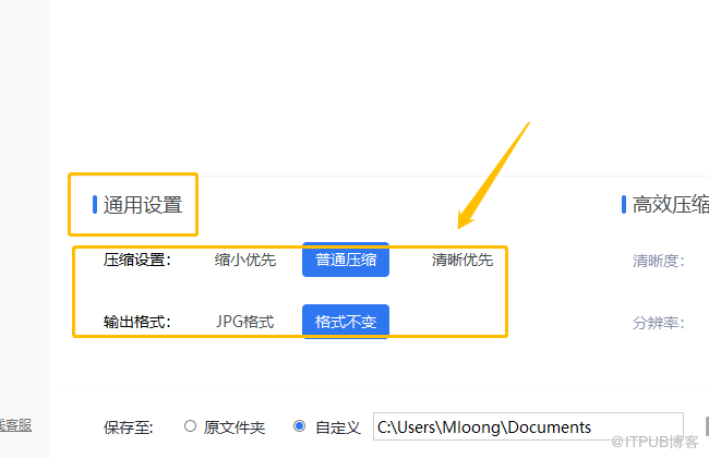 3:图片添加完成后,我们选择需要转换的设置,页面下面有通用设置,我们可以选择压缩设置和输出的格式,根据自己的需要选择就好。