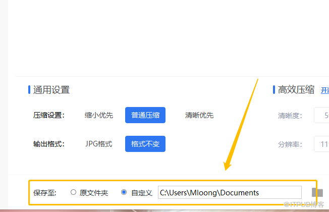 4:压缩之前要为压缩后的文件选择一个保存的位置,可以是原文件夹,也可以自定义保存。