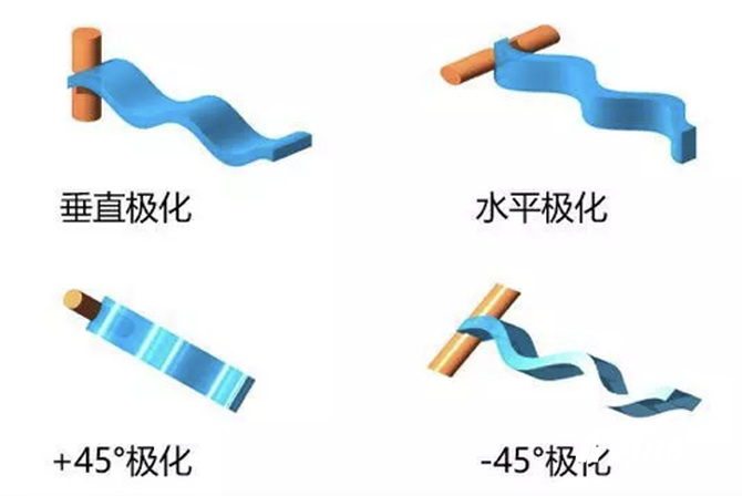 如果电场的方向和地面成45°夹角,我们就其称为±45°极化。