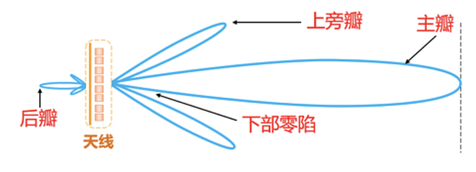 水平方的主瓣向发射地远远地,但垂直方向产生了上旁瓣和下旁瓣,同时由于反射不完全,后面还有个尾巴,称为后瓣。