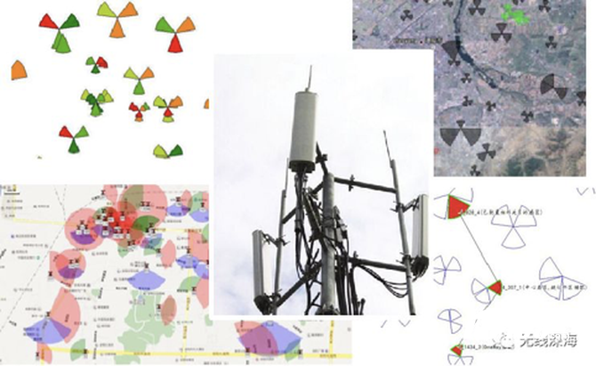 上图是一个片区域的基站覆盖规划图,我们可以清楚地看出,每个基站都由三个扇区组成,每个扇区用不同的颜色表示,也就需要三副定向天线来实现。