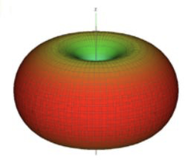半波振子把电磁波源源不断地向空间传播,但信号强度在空间上的分布却并不均匀,像是轮胎一样的环形。