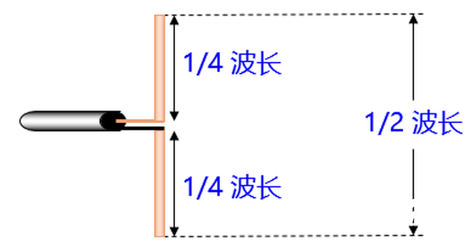 上面这种产生电磁波的这两根导线就叫做“振子”。一般情况下,振子的大小在半个波长的时候效果最好,所以也经常被称作“半波振子”。