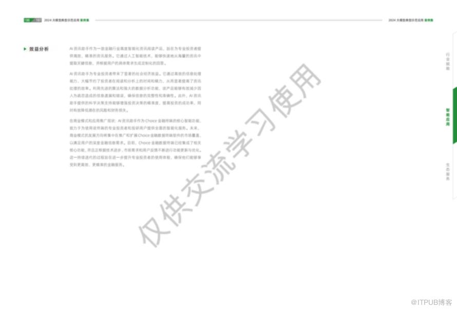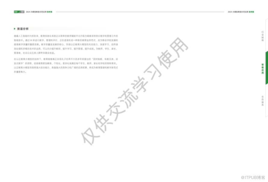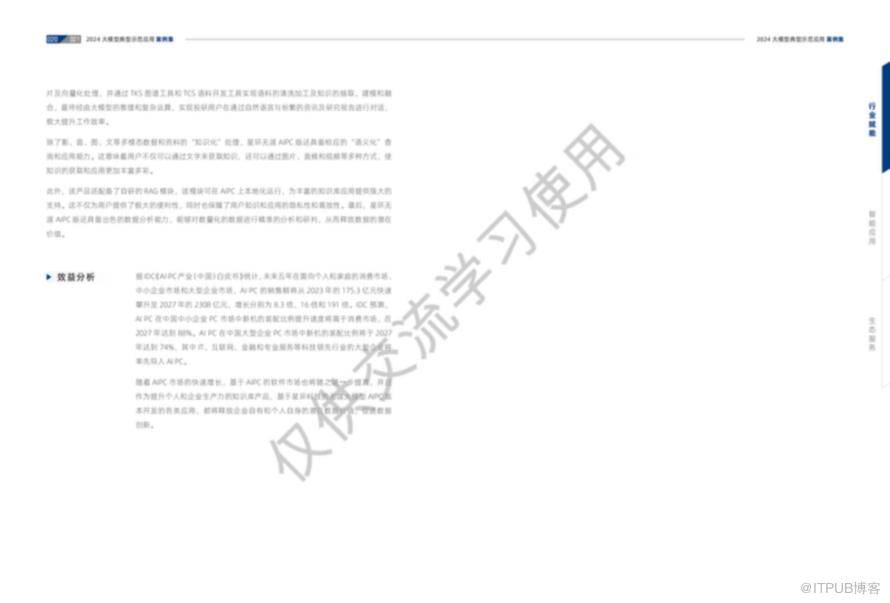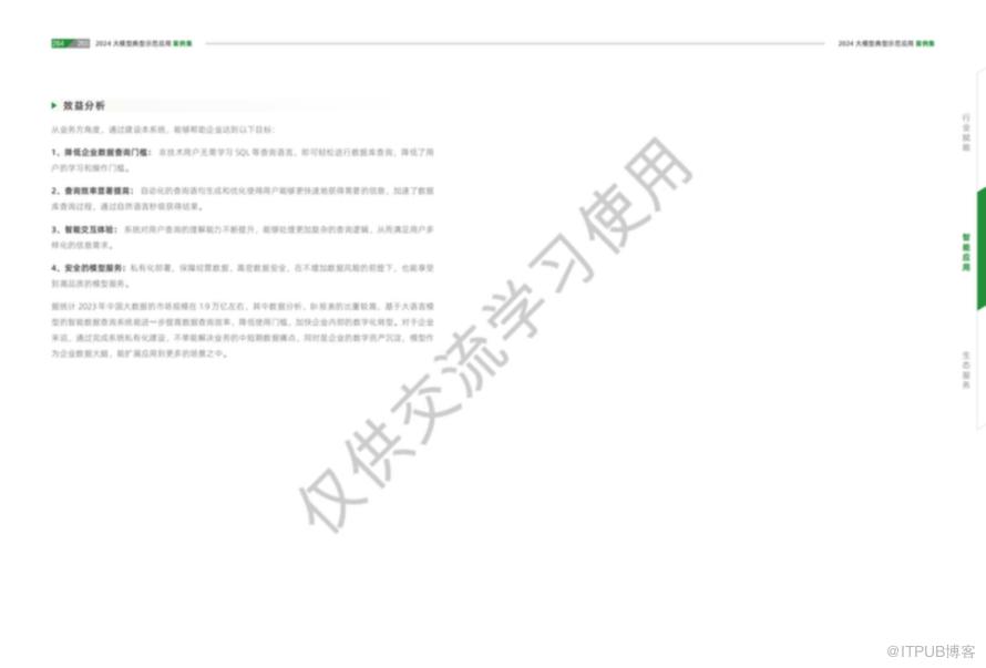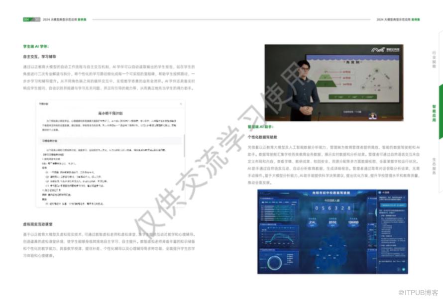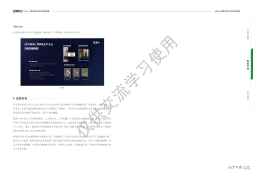 大模型技术作为新一代人工智能的重要代表,正以其强大的数据处理能力和智能化水平,深刻影响着社会的各个领域。从教育到医疗,从金融到工业,再到政务和法律服务,大模型技术的应用案例集展示了其在提升效率、优化服务、推动创新方面的巨大潜力。随着技术的不断进步和应用的深入,我们有理由相信,大模型技术将为行业赋能,为社会发展带来更加广阔的前景。每个行业都有相对应的案例,详细案例可以参考《2024大模型典型示范应用案例集》
