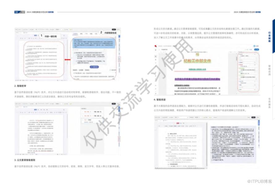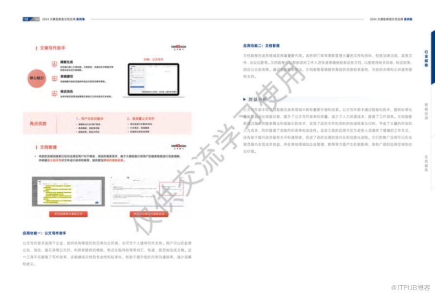 1、文章写作助手:该应用利用自然语言处理和机器学习技术,帮助政府工作人员自动生成公文初稿,提供写作建议,并进行语言规范和内容准确性的校阅。这减轻了工作人员的写作和校对负担,提高了公文撰写和审核的效率和质量。2、文档智搜功能:通过大数据和人工智能技术,该功能能够快速检索海量文档,实现高效的信息查询和知识管理。它能够智能解析政策、法规等文档内容,提供精准的搜索结果,帮助工作人员快速找到所需的政策和法规信息,显著缩短查找时间。法律服务的专业性和可获取性提升