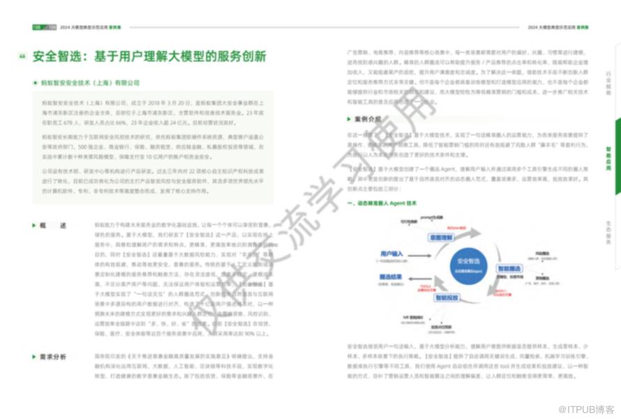金融行业利用大模型技术进行风险管理和服务优化。例如,蚂蚁智安安全技术(上海)有限公司的“安全智选”产品,通过大模型技术洞察用户需求,提供精准服务,同时有效规避潜在风险群体。