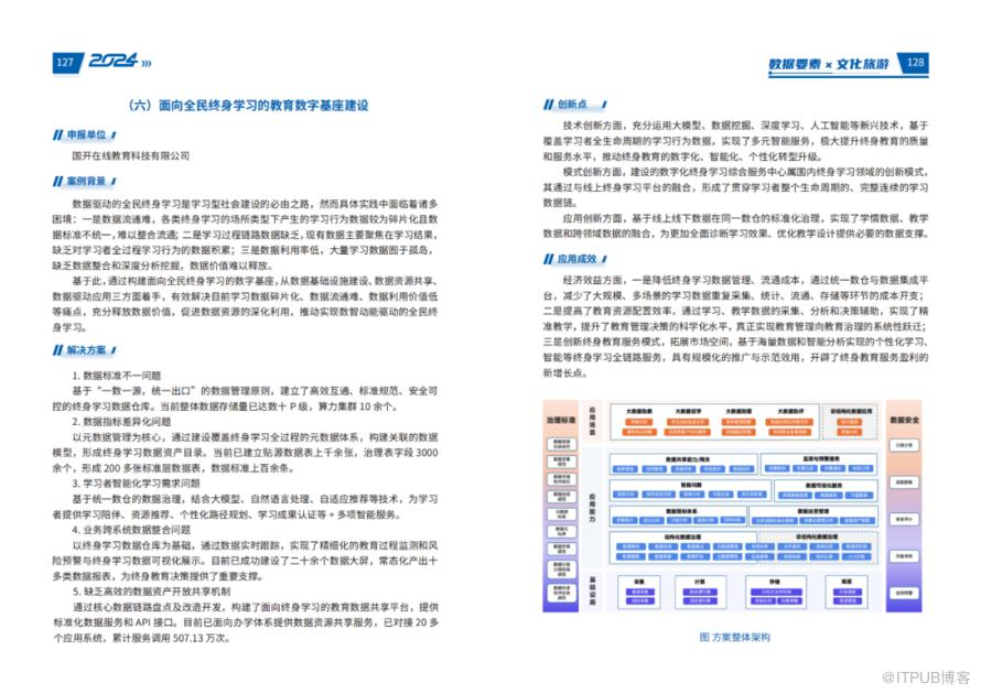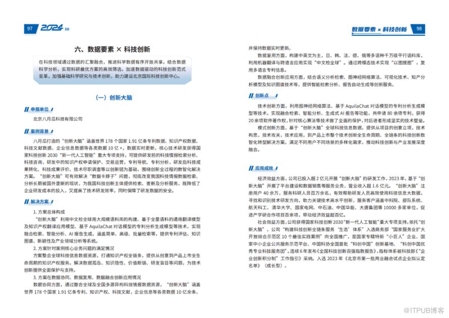 科技创新领域,数据要素的应用正在加速科技研发进程。例如,“创新大脑”项目通过汇聚全球科技信息数据资源,打通知识产权全链条,提供从创意到产品上市全生命周期的知识产权服务,解决数据孤岛、知识隐性、价值断链、研发盲目等问题。文化旅游:数据要素促进文化传播