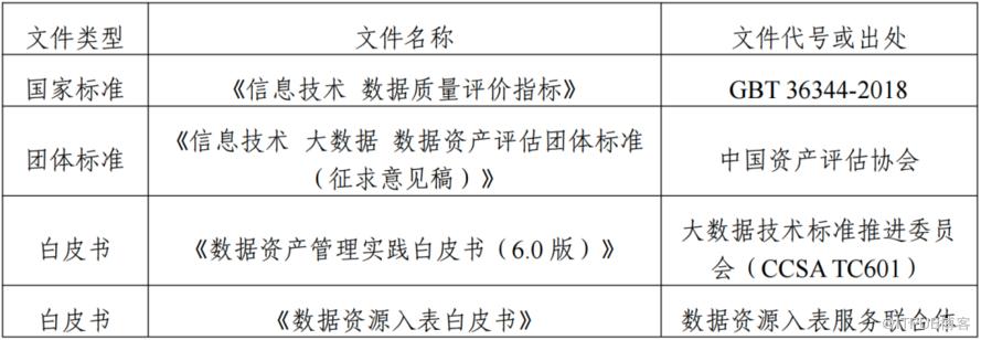 数据价值评估涉及的主要参考文档: