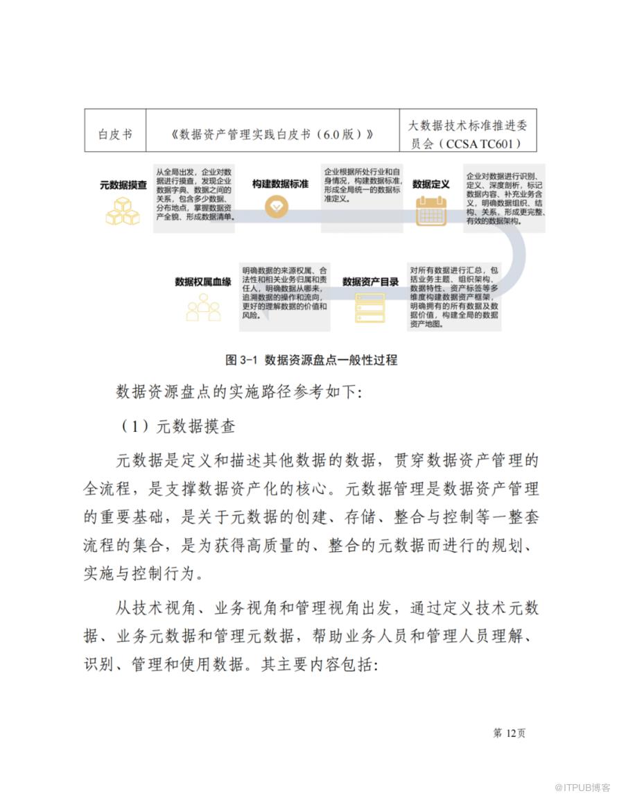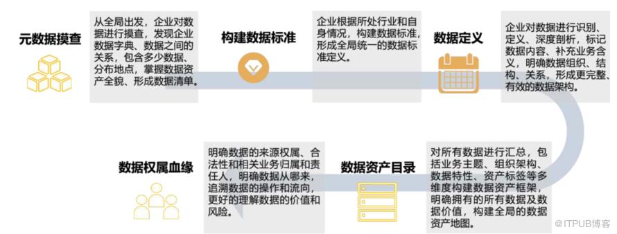 全面摸查企业的数据资源,形成数据资源清单,优化资源配置,提升数据质量。数据资产盘点主要设计到如何盘点,盘点涉及的主要流程: