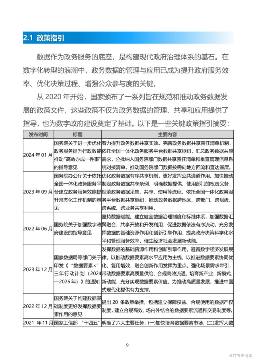 3. 数据类型:政务数据包括但不限于结构化数据、半结构化数据和非结构化数据,如文本、图像、音频、视频等。