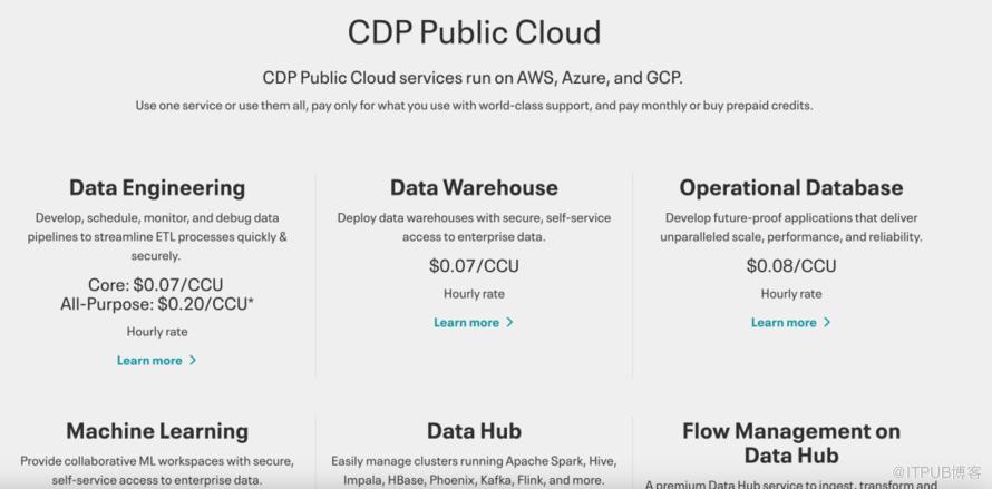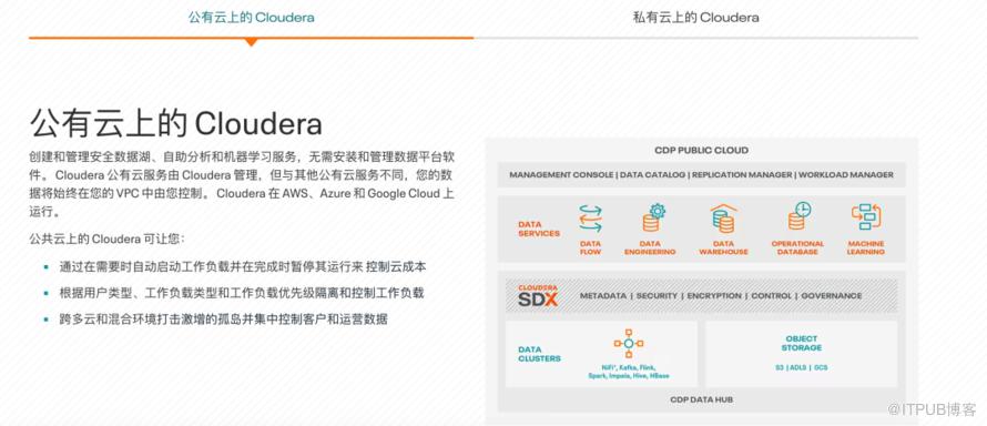 2019年Hortonworks和Cloudera合并,形成了新的产品CDP(Cloudera Data Platform)。这是一个集成了两家公司的技术和解决方案的大数据平台产品。CDP提供了全面的数据管理和分析能力,支持实时数据处理、数据仓库、数据湖、机器学习和人工智能等功能,帮助企业更好地进行数据驱动的决策。CDP采用了开放的架构和云原生技术,可以灵活部署在公有云、私有云或混合云环境中。它还提供了一系列的工具和服务,帮助企业快速构建和管理大数据平台,简化了数据管道的开发和部署过程。通过合并,Hortonworks和Cloudera的产品和技术得到了整合和增强,用户可以从中获益。CDP的目标是成为一个全面、开放和可扩展的大数据平台,帮助企业面对不断增长和多样化的数据挑战,并提供高效的数据管理和分析能力。合并之后主要支持的版本是公有云和私有云两大场景。公有云版本 CDP public cloud,目前三大公有云厂商 aws, gcp, azure都已经提供了支持;