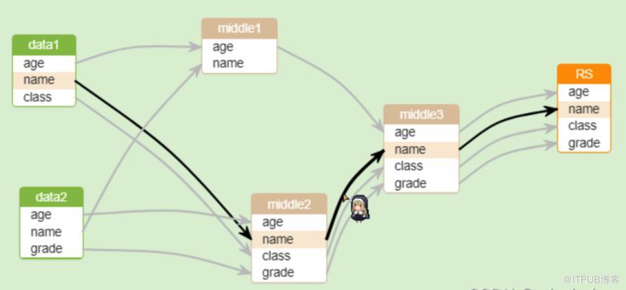 这些元素共同构成了数据血缘的可视化图形,帮助我们更好地理解数据之间的关系和流动路径。
