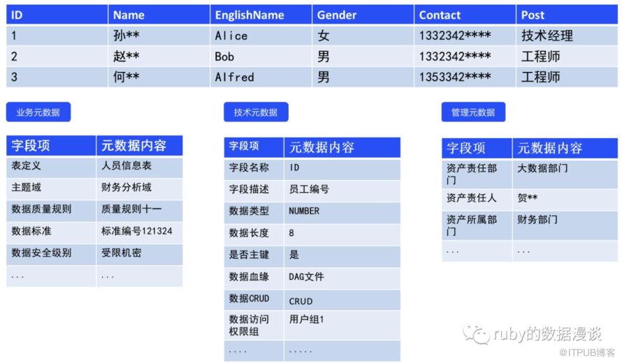 那么针对上面那个例子,我们详细列一下该表的业务元数据、技术元数据、管理元数据信息。