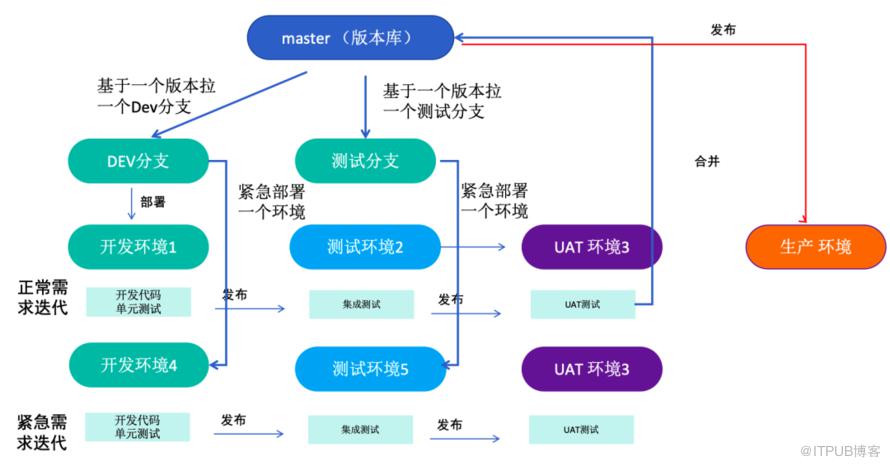 上图是正常的大数据代码开发的流程,分为正常需求流程和紧急需求迭代流程,数据管道在下图中可以理解为master版本库一直存在于开发环境,测试环境,UAT环境,以及生产环境,需要通过发布的方式进行代码迭代同步,在紧急需求的情况下,能够进行对开发和测试环境克隆,快速克隆出开发环境和测试环境用于紧急需求的开发和测试。一体化的开发工具和简单易用的环境搭建流程和克隆流程,以及发布部署流程,极大缩短了开发部署的时间,让开发人员专注于代码开发,不会为环境部署和发布浪费更多的时间。同时临时使用的环境在使用完后,通过一键销毁,快速销毁环境,将资源得以释放。从而达到一体化的研发体验。